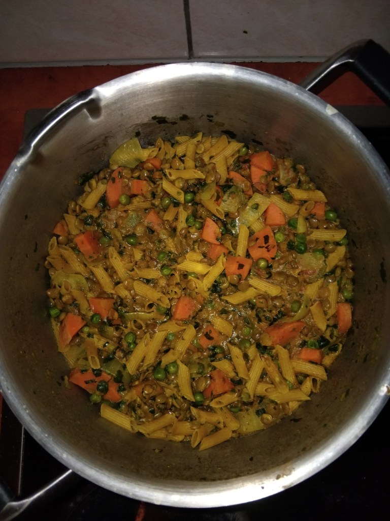 step six: when lentils are soft add carbs maybe some couscous or pasta